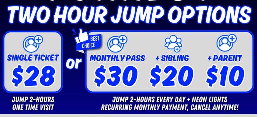 Incredible savings now for sibling and parent add-ons to the FUNNEST MONTHLY PASS, and now you can cancel at any time without penalty!
